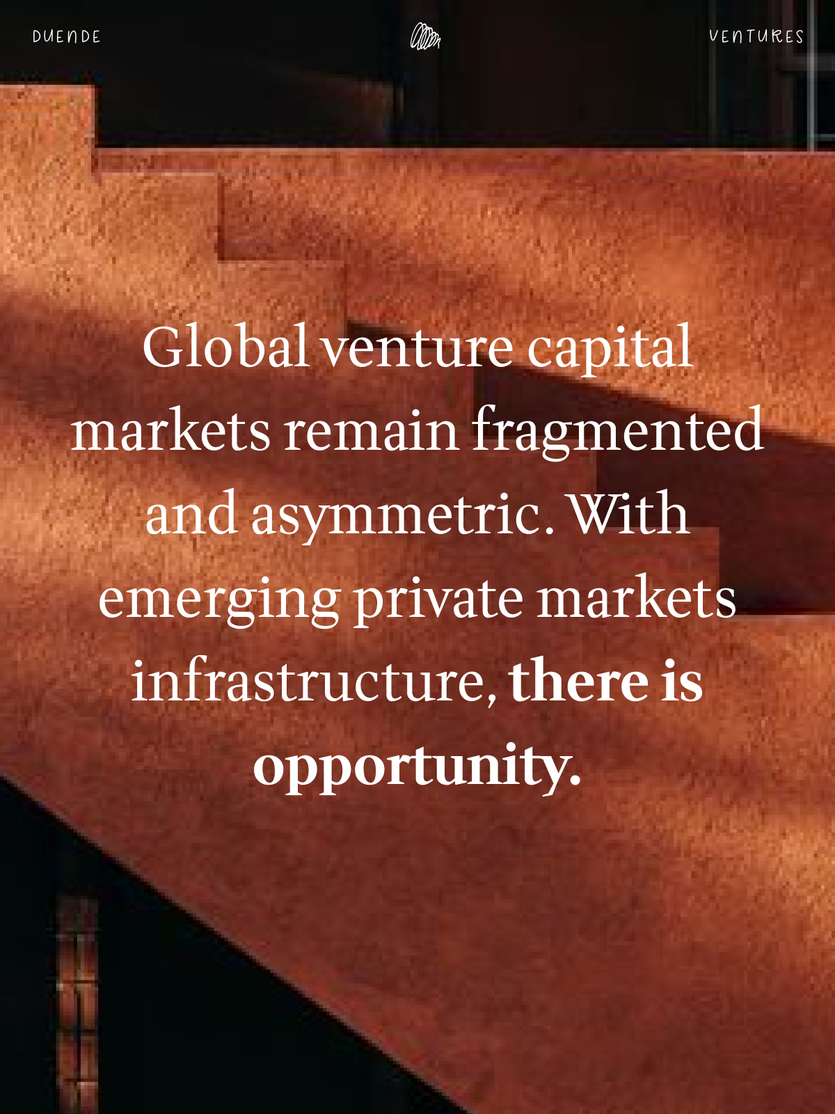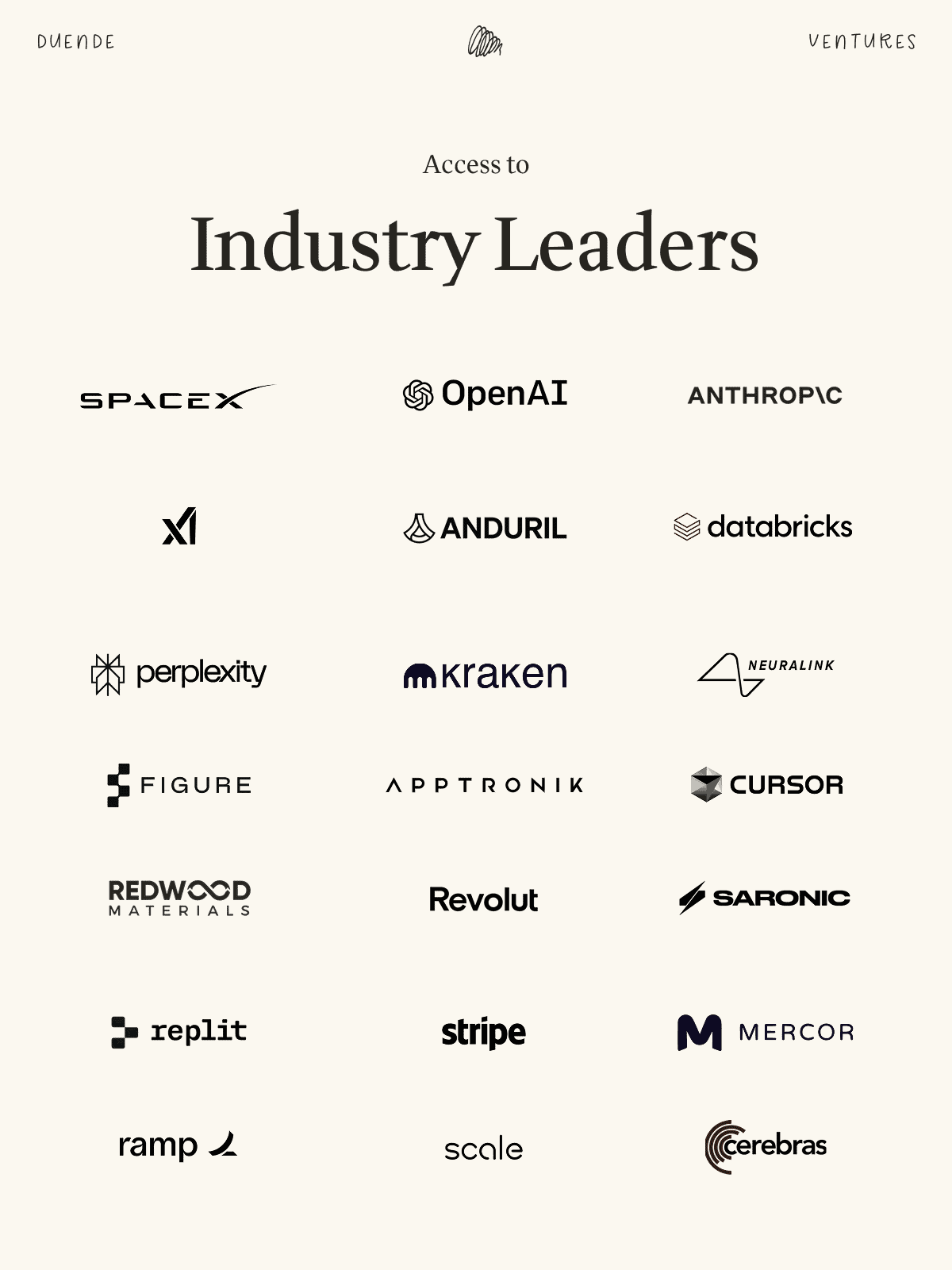 Duende offers unique co-investment opportunities for capital allocators (mainly FOs, HNWIs, and managers in the US, LATAM, Europe, and the Middle East) with growth to late-stage investment opportunities. They focus on leading technology companies in AI, aerospace, defence, and robotics. Duende is managed by Rob Lusk and Brady Mason, whose backgrounds provide deep industry ties to top US VCs, a global investor network, and a connection to technology powering many of the private market transactions in Silicon Valley.